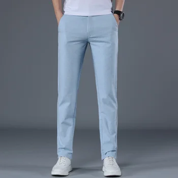 Breathable Straight Fashion Khaki Grey Blue Trousers Male Pant