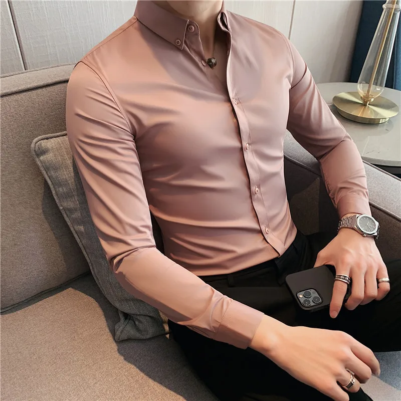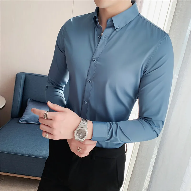 High Quality Solid Shirts for Men Long Sleeve Streetwear/ Tuxedo