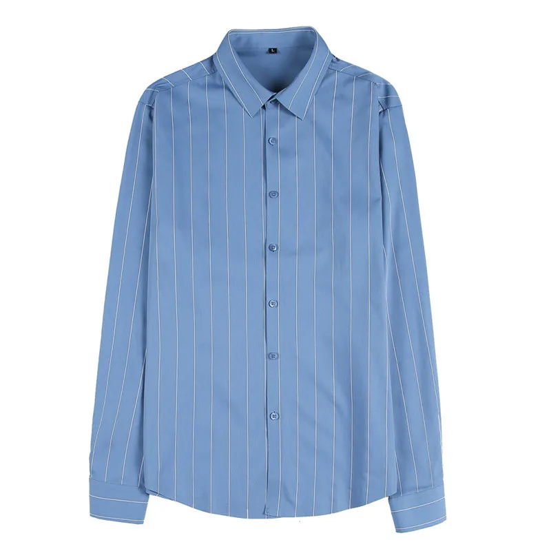 Long Sleeve Striped Shirts Men Clothing 2022 Business Formal Wear Slim Fit